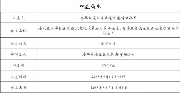金華-義烏-東陽市域軌道交通工程運(yùn)營2025-2026年消防器材采購項(xiàng)目中標(biāo)候選人公示