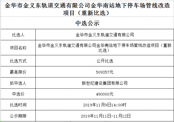 金華市金義東軌道交通有限公司運營2026-2027年度活動實施服務(wù)機構(gòu)框架協(xié)議項目中標候選人公示