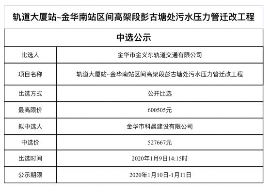 金華市金義東軌道交通有限公司運營2026-2027年度活動實施服務機構框架協(xié)議項目中標候選人公示