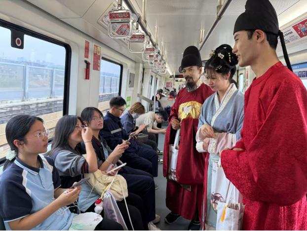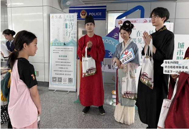 李清照、宋濂、駱賓王和艾青四位詩人“穿越”而來,他們在站臺及車廂內(nèi)與乘客互動,進(jìn)行詩詞接龍、知識問答,引發(fā)打卡熱潮,帶來“軌道交通浪漫詩會”的沉浸式體驗!
